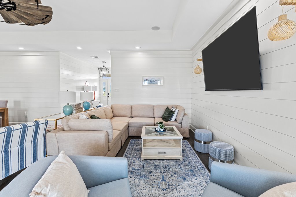 - Cozy living room with options for streaming TV shows and movies.
